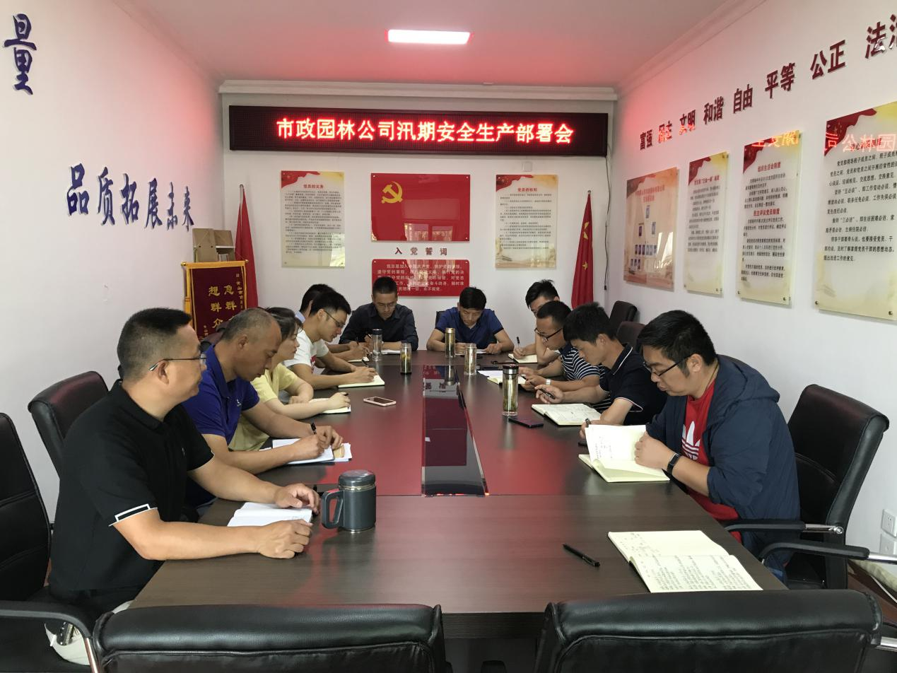 會(huì)議強(qiáng)調(diào)了汛期安全的重要性與必要性,并對(duì)防汛工作提出了具體要求,一是高度重視,提高認(rèn)識(shí),認(rèn)清安全生產(chǎn)工作形勢(shì),加強(qiáng)組織領(lǐng)導(dǎo),全面落實(shí)安全生產(chǎn)主體責(zé)任,保證公司在建工程、市政園林養(yǎng)護(hù)現(xiàn)場(chǎng)、物資及苗木生產(chǎn)場(chǎng)所安全度汛。二是嚴(yán)格落實(shí)領(lǐng)導(dǎo)帶班制度,加強(qiáng)值班值守和汛情通報(bào),及時(shí)傳達(dá)重要天氣信息,值班人員堅(jiān)持24小時(shí)值班,公司全員保持24小時(shí)通訊暢通,確保一旦有汛情能及時(shí)上報(bào)、及時(shí)組織處置。三是加強(qiáng)汛期安全隱患排查治理,安全技術(shù)所根據(jù)年初制定的計(jì)劃,開(kāi)展防洪防汛全面檢查,對(duì)排查出的隱患及時(shí)記錄并做好督促整改;車械管理所開(kāi)展汛期車輛設(shè)備安全檢查,重點(diǎn)對(duì)高空作業(yè)車進(jìn)行專項(xiàng)檢查,保證車輛性能良好,滿足中心城區(qū)市政、園林基礎(chǔ)設(shè)施排澇工作需求;內(nèi)勤部門(mén)要做好汛期檔案保管工作,對(duì)檔案存放地的防汛安全進(jìn)行排查,防治檔案出現(xiàn)損壞。四是做好防汛物資保障,建立健全防汛物資臺(tái)賬,配足配齊編織袋、沙子、強(qiáng)光手電、救生衣等防汛物資及工具,強(qiáng)化防汛應(yīng)急工作。五是各部門(mén)要加強(qiáng)安全教育培訓(xùn)和安全生產(chǎn)知識(shí)宣傳,進(jìn)一步構(gòu)建群防群治工作格局,強(qiáng)化宣傳引導(dǎo),壓實(shí)安全生產(chǎn)責(zé)任制。