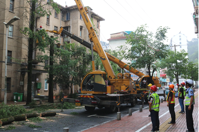 為了及時消除安全隱患,給社區(qū)居民營造一個干凈整潔的居住環(huán)境,保證居民的家庭采光,市政園林公司聯(lián)合交通、城管、管理中心等多部門,提前制定了修剪計劃,并告知周邊店鋪及居民移走路邊車輛及設施。修剪時封閉此段交通,在保證安全的同時爭取盡快完成修剪任務,修剪后及時完成現(xiàn)場的清運工作,盡早恢復交通及居民的正常生活。