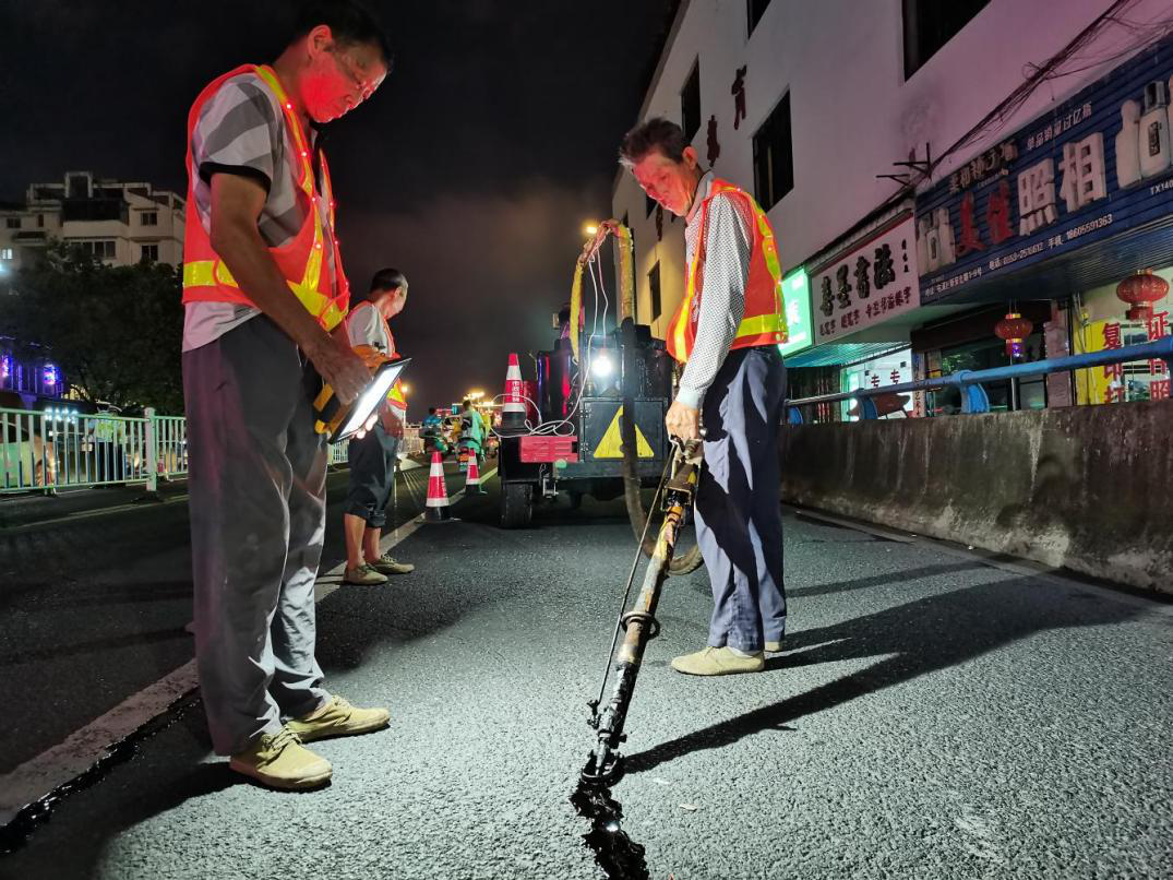 在城市慢慢沉寂的夜晚,迎著新安江的涼風,趁著車輛通行減少的施工便利條件,市政園林公司出動灌縫機1臺和運輸車1臺,1個作業(yè)班組開展夜間作業(yè),盡量減少橋面施工對行人車輛通行影響。經過9個多小時的作業(yè),此次預防性養(yǎng)護工作共完成瀝青路面灌縫2150m,恢復了路面平整舒適,有效防止路面進一步開裂、滲水和老化,延長了新安大橋路面的使用壽命,有效改善了新安大橋的通行環(huán)境,保證了廣大人民群眾的出行安全。(市政園林公司供稿)