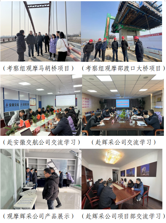 考察組一行先后來到亳州馬湖橋項目、邵渡口大橋項目部、合肥蜀山區(qū)二期亮化項目現(xiàn)場,觀摩考察了交航公司及輝采公司施工項目現(xiàn)場,實地感受整齊有序的施工現(xiàn)場秩序以及先進(jìn)的施工管理經(jīng)驗。交流會上,考察組一行與交航公司、輝采公司深入交流了項目部考核管理、招標(biāo)采購制度、經(jīng)營業(yè)務(wù)拓展激勵等方面的先進(jìn)經(jīng)驗及做法,雙方就后續(xù)管理中存在的難點展開深入探討交流。
