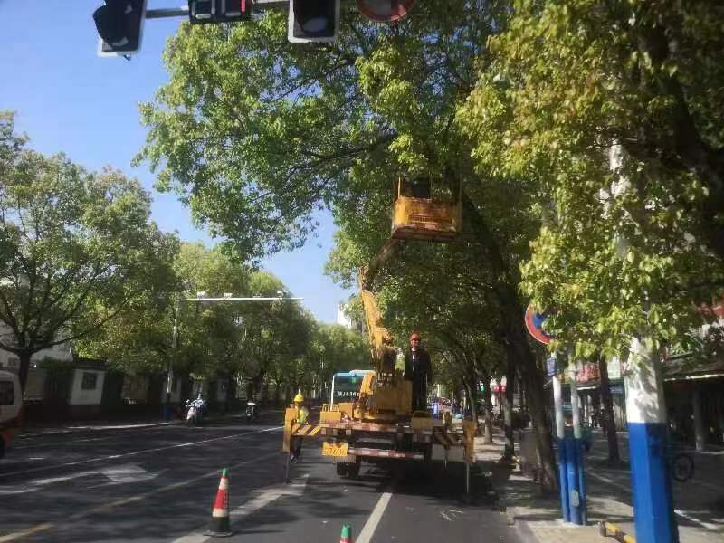 為了保障路燈夜間照明效果和出行安全,市政園林公司出動高空作業(yè)車1輛,作業(yè)人員10名對該路段的行道樹進(jìn)行修剪。本次修剪工作于4月20日結(jié)束,共修剪行道樹20余株。